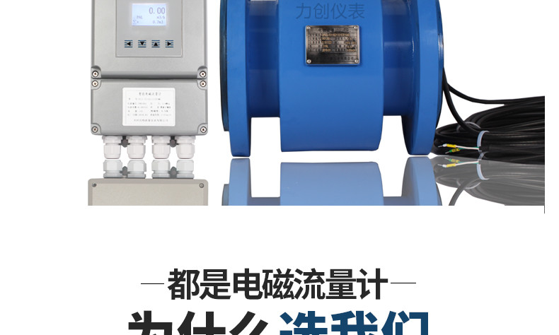 分體電磁流量計測量原理是基于法拉第電磁感應定律,由傳感器和轉換器組成,傳感器安裝在測量管道上,轉換器被安裝在離傳感器30米內或100米內的場合,兩者間由 連接。傳感器主要組成部分是:測量管、電極、勵磁線圈、鐵芯與磁軛殼體。主要用于測量封閉管道中的導電液體和漿液中的體積流量。如水、污水、泥漿、紙漿、各種酸、堿、鹽溶液、食品漿液等,**應用于石油、化工、冶金、紡織、食品、制藥、造紙等行業以及環保、市政管理,水利建設等領域測量高溫,高濕,不便觀察的環境。